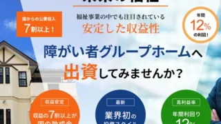 年利12%!未来の福祉評判の投資&社会貢献!年利12%の株式会社フラクタル『未来の福祉』 『未来の福祉』への出資金は障がい者グループホームの立ち上げ資金として運用されます。成長が見込まれる障がい者グループホームは今注目の資金運用先ですが、投資にあたつては運営会社である(株)フラクタルの理解が不可欠。同社について詳しく説明します。 2025.04.23年利12%!未来の福祉